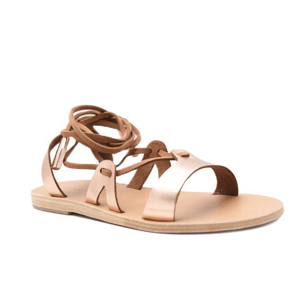 Hand-crafted sandals with strap up ankle, finished with rose gold tassles.