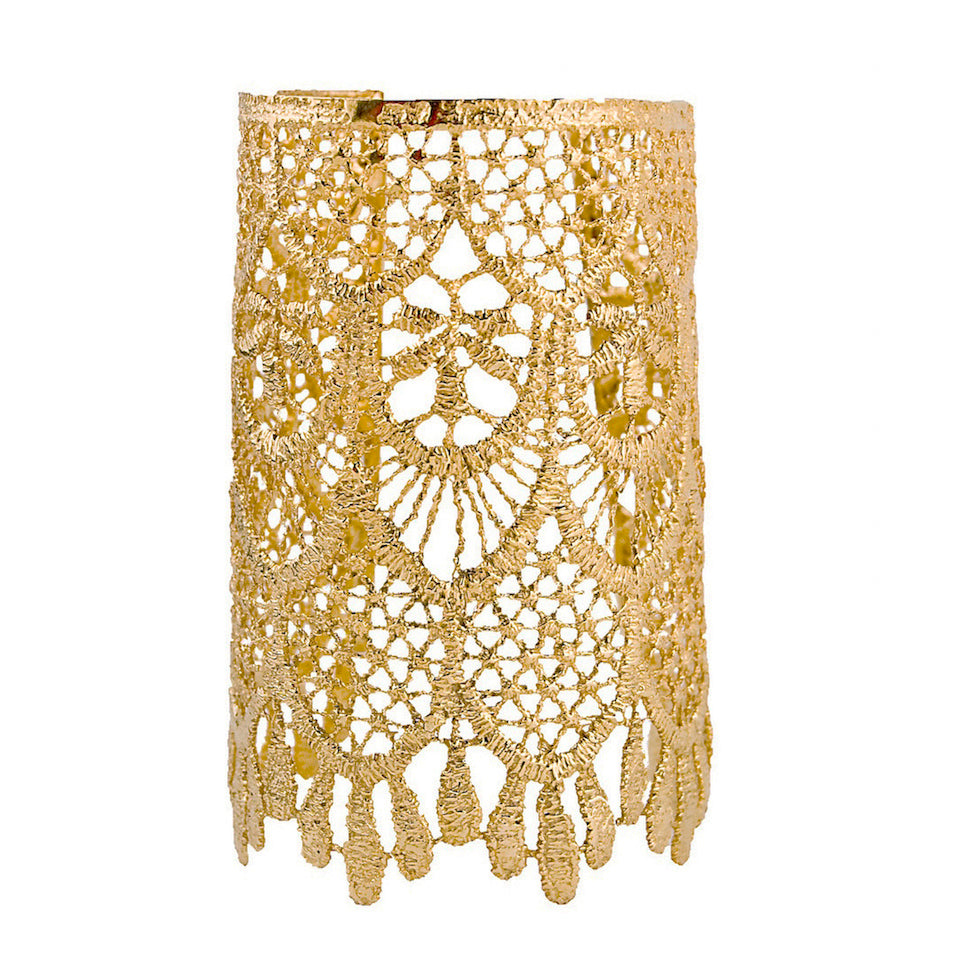 A beautifully handcrafted solid 24k gold-plated cuff, featuring a unique lace effect. This is the Arrow style cuff with additional frond-like ends. Made using the centuries-old 'lost wax' jewellery crafting method, dating back to the 3rd millennium BC.