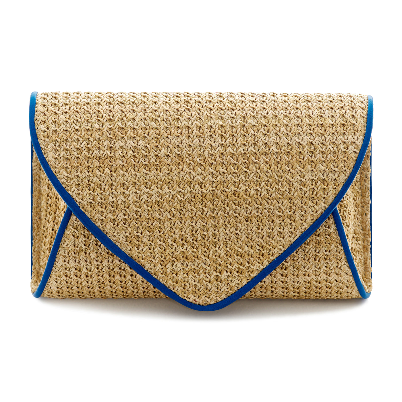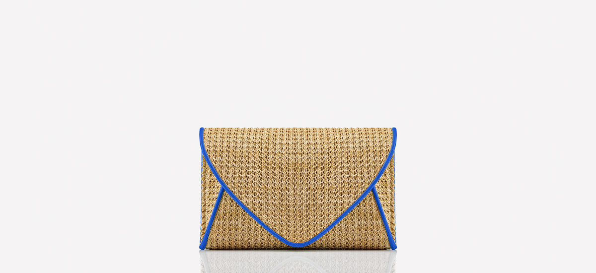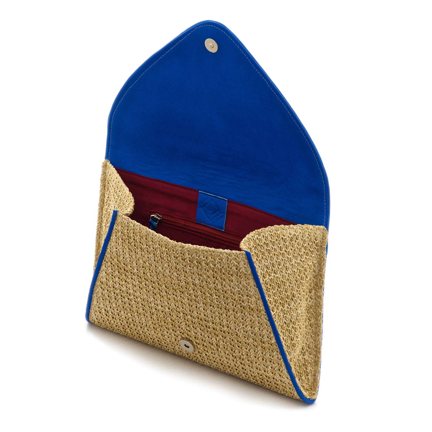 This premium envelope clutch bag is meticulously handcrafted from plaited polished raffia. Featuring the finest lambskin leather lining and leather piping. The Iride de Portu, clutch is spacious with a lined interior. Made entirely by hand, no two bags are identical. Limited pieces.