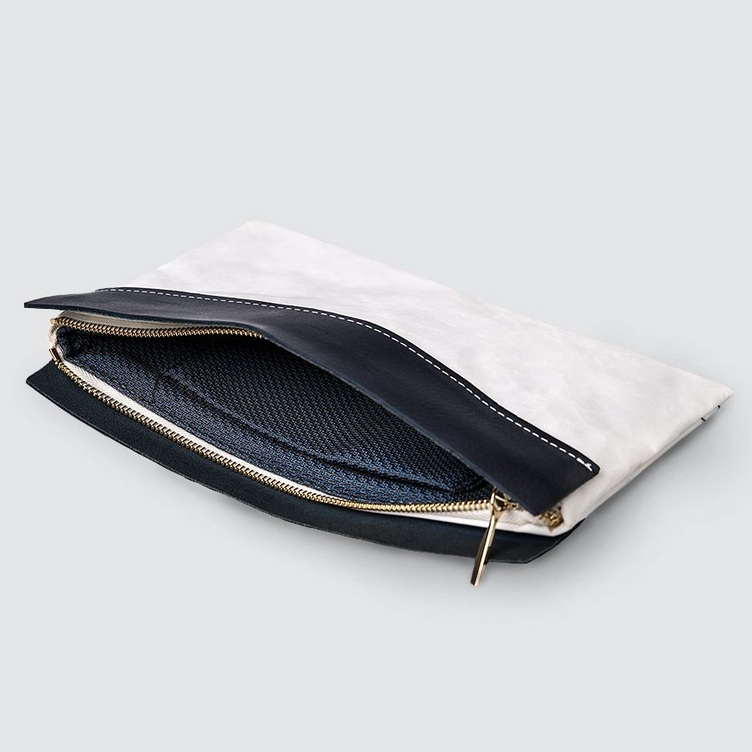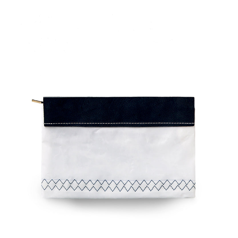 A premium sailcloth clutch with fine leather panels. An essential mini hold-all.