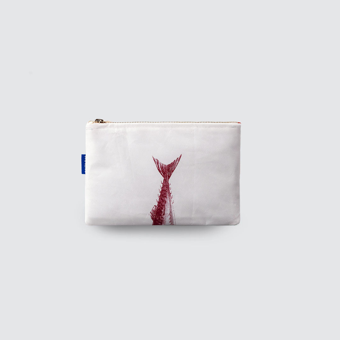 This limited edition upcycled pouch is surprisingly roomy and ideal for your phone, keys and notes. Featuring a sardine illustration as part of the Psasou collection | which is a collboration with leading silk screen print artist TIND (Manolis Angelakis).