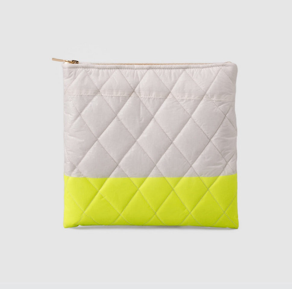 An upcycled and quilted soft touch clutch. Designed to fit all your day to day essentials.