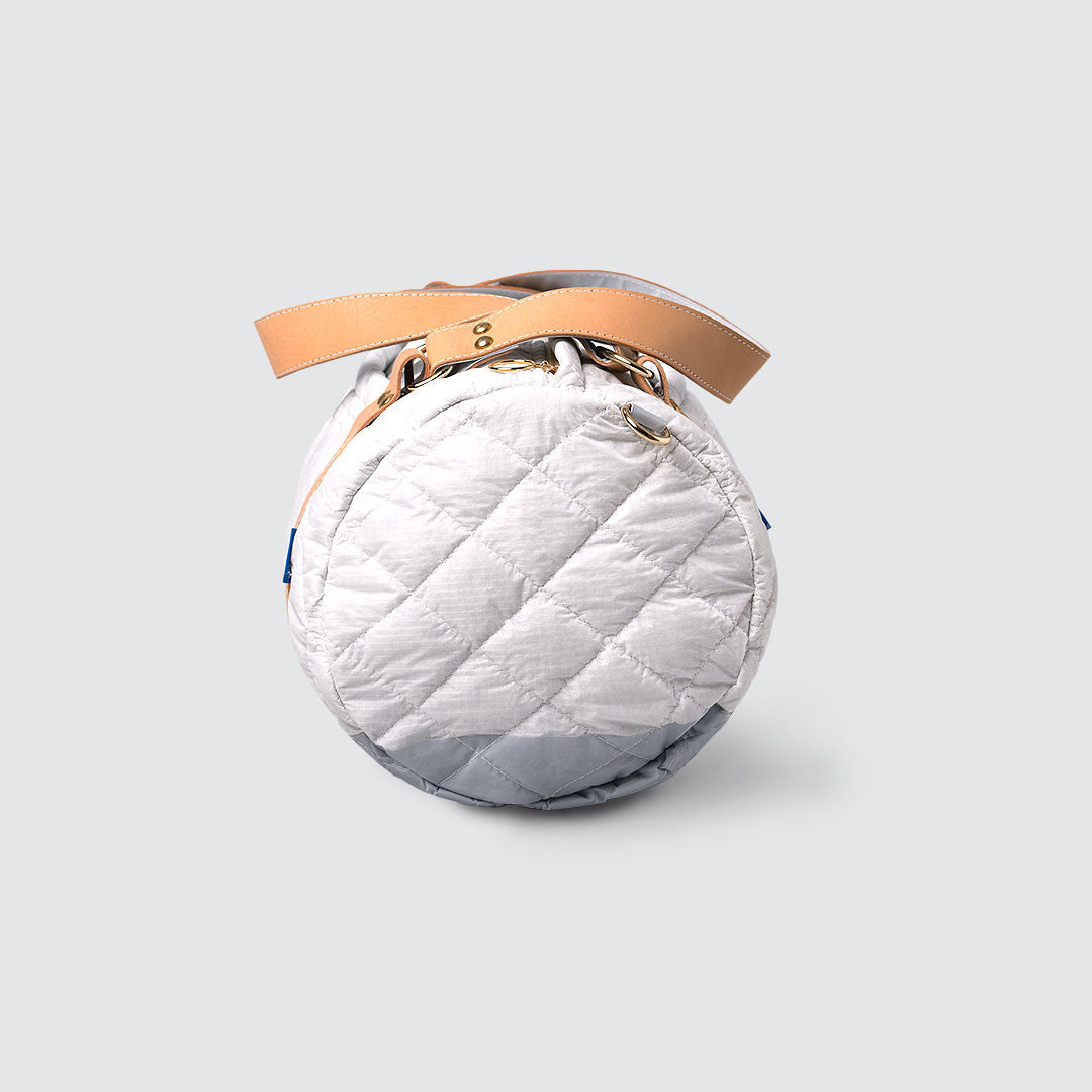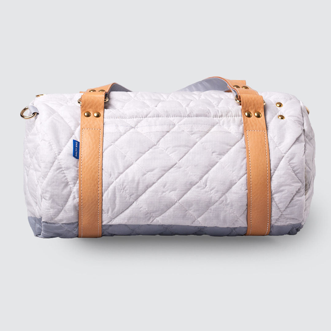 A luxurious quilted duffel, weekender, or stylish gym bag. Lined with premium Climatex. Fill with your clothes and rest your tired head! Each bag has a story. Your bag will arrive with its own number which will relate to the distance sailed, the race it may have participated in and seas it sailed around the world.