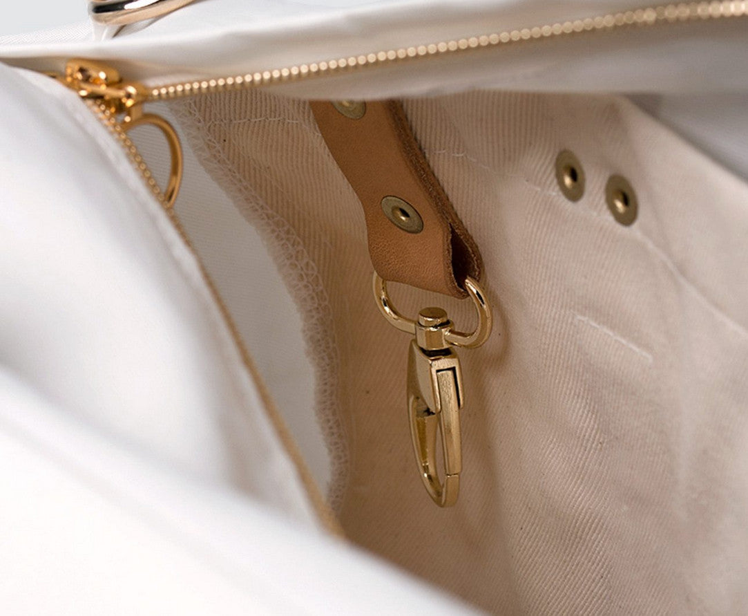 Exterior Do not wash your Salty Bag if it includes Climatex lining. Clean by soaking it in lukewarm water with mild detergent. To spot clean, dab immediately and very gently with a soft moist white sponge. Wash by hand and do not place in a washing machine. Never use chlorine or bleach. Do not tumble dry. Protect your Salty Bag from prolonged exposure to strong sunlight and avoid contact with water, oil and grease. When not in use, keep in a cool, dry place. Leather Do not wet leather parts. The leather can be treated with a neutral, natural leather care product using a soft cloth. Let it wear with you.