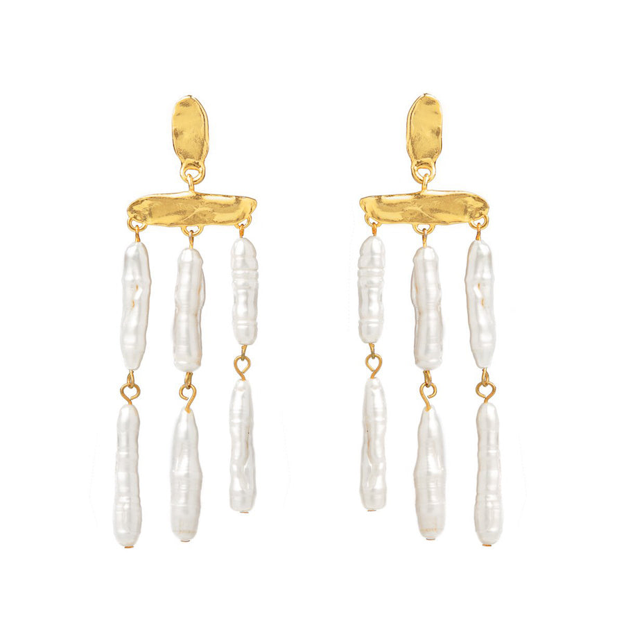 Handmade 24K gold plated hammered finish with 6 premium freshwater pearls. Worn by International blogger Chloe Morello