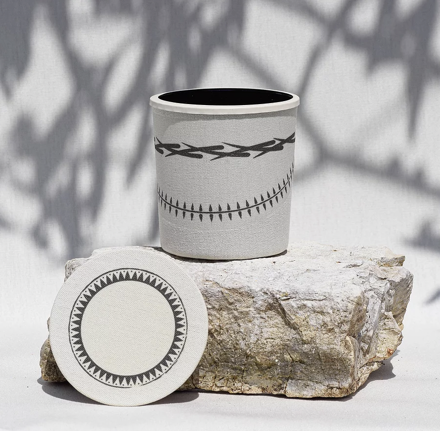 This luxurious wild fig and warm deep amber scent calls to mind the Mediterranean. The unique artistic design is printed on linen fabric reflects the Hellenistic period of Ancient Greek Art (323 BC - 30 BC ). Once the candle burns down, the cylindrical pot can be re-used as a keepsake.