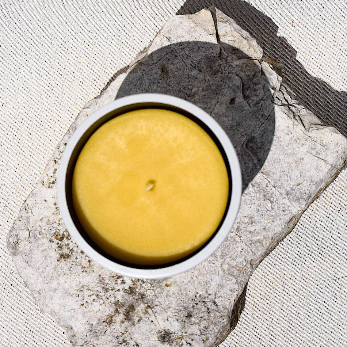 Each cylindrical pot contains 100% beeswax hand poured in a small village on the island of Corfu.