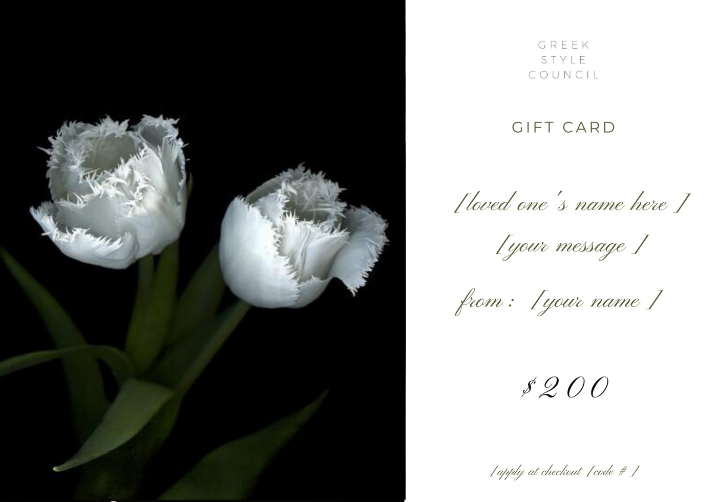 Our E-GIFT CARDS have no additional processing fees and no expiry date.