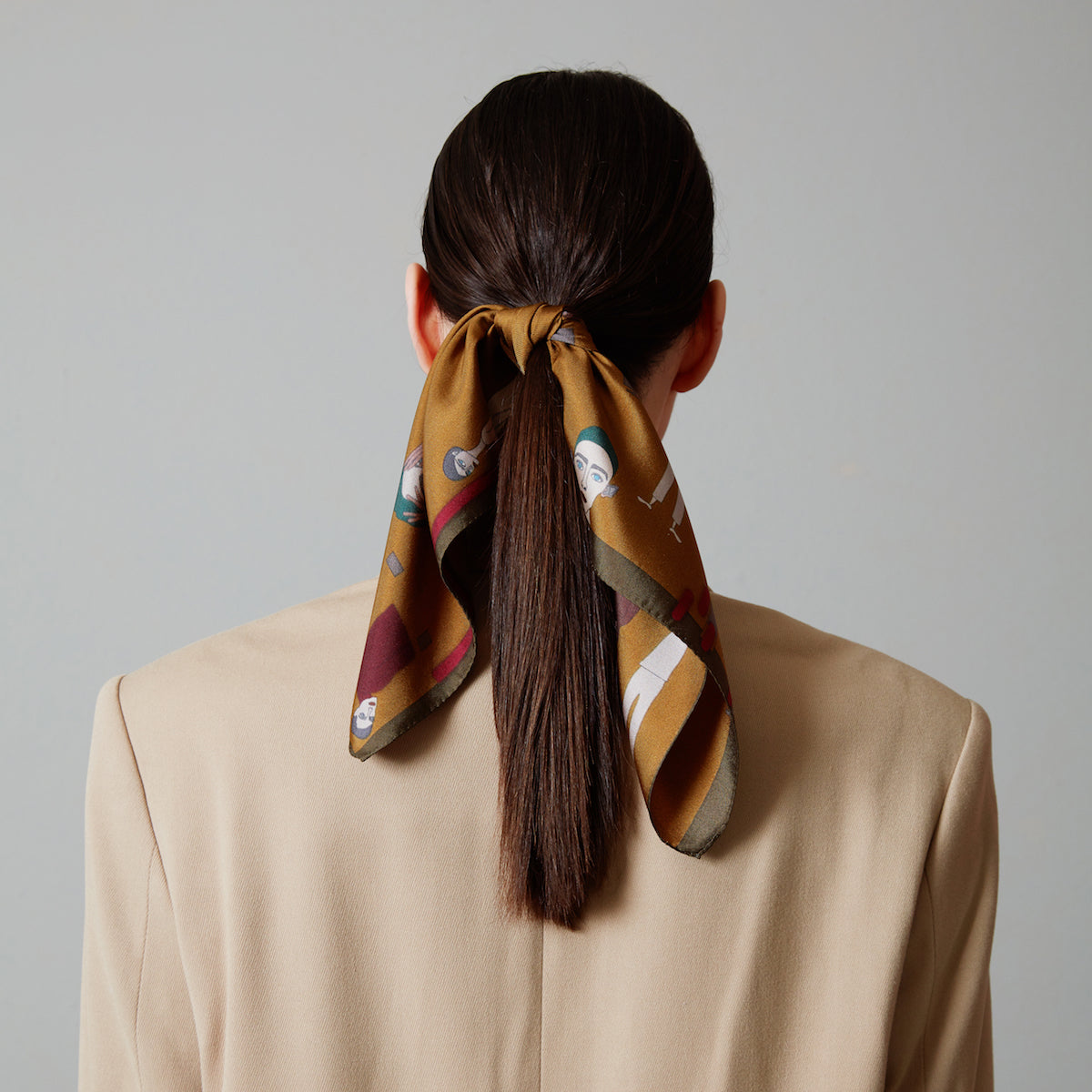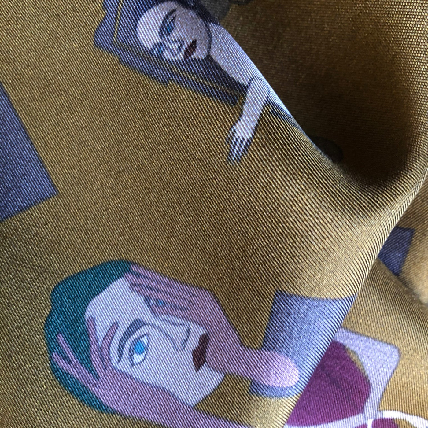Premium 100% Silk. Hand illustrated figurative artwork on a luxurious large silk scarf. The designs are printed digitally and sewed traditionally by hand. The silk is sourced from natural silkworm cocoons within the 19th century old silk producing town called Soufli. Wear a piece of art.