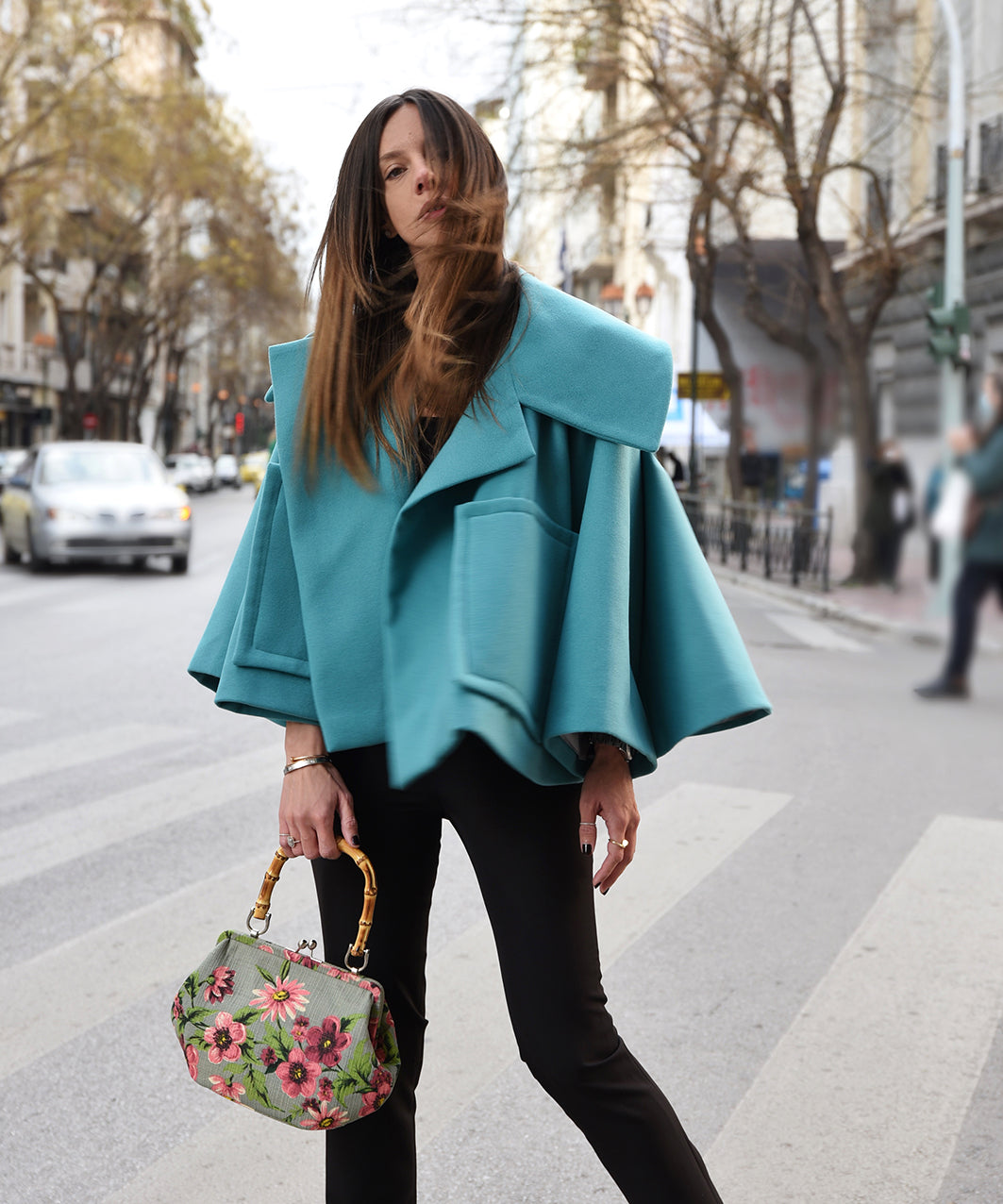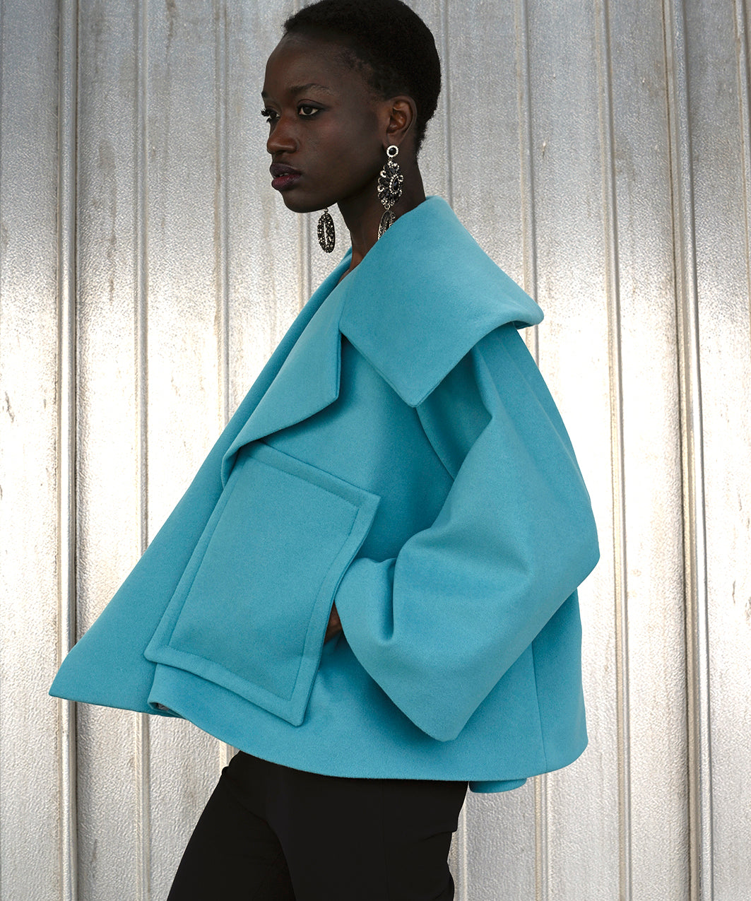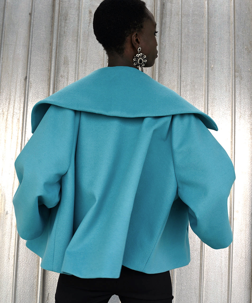 A modern take on the classic 1960's trapeze swing jacket. Lightweight, voluminous and features a super wide cape collar. It's cleverly cut so that it is flattering to all shapes. Wear it over jeans, skirt or dress. Make your statement!