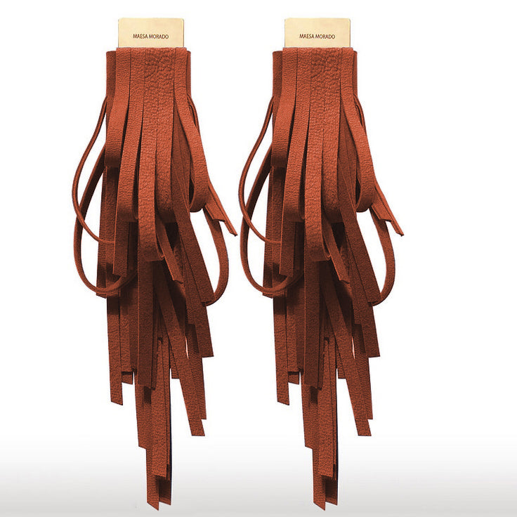 This is a hand-made piece, so please handle carefully. Avoid any contact with water or alcohol. Keep the gold plated details clean using a soft cotton fabric and place it back into its box for storage. If you accidentally mark the leather, pat gently with a quality 'magic eraser'. If your tassles are bent, you can flatten them by ensuring your cover the earring with a clean cloth or towel and lightly steaming the leather part of the earring using a barely warm iron to then flatten. Avoiding the hooks.