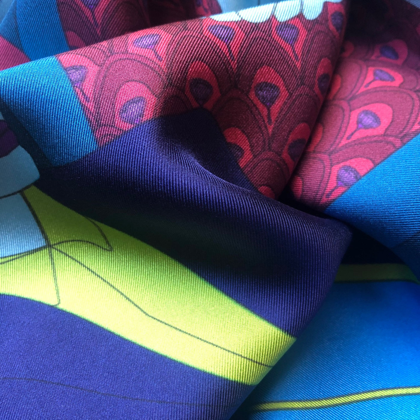 To preserve the beauty of this luxurious scarf - Dry Clean only and entrust it to a specialised professional for dry cleaning.Cool Iron the backside only. Store your scarf flat and untied.