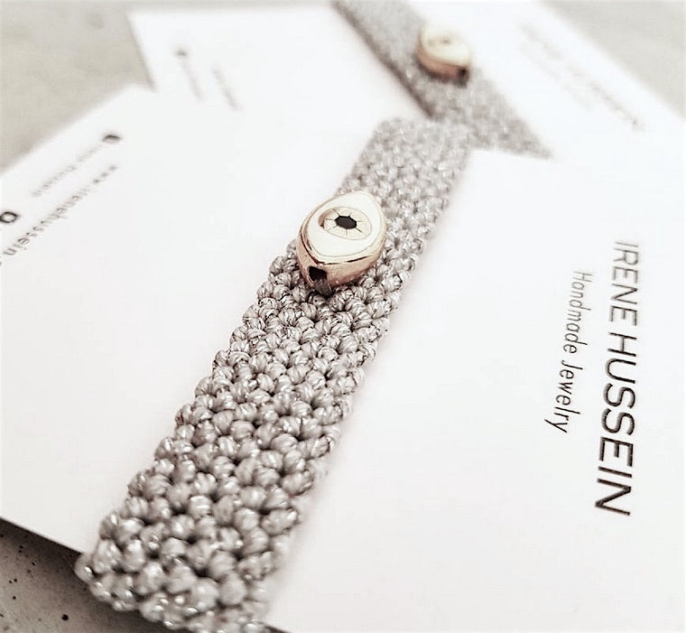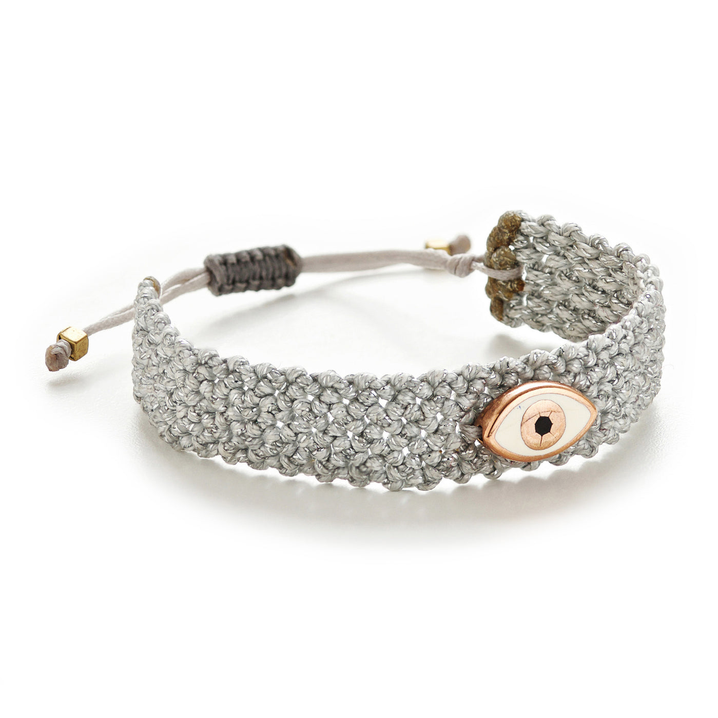 The original handcrafted macrame bracelet is delicately hand-stitched using a unique traditional macrame knotting technique, and features a gold-plated elegant signature eye. In ancient times, it was a commonly held belief that wearing an 'eye' (mati, in Greek) is said to ward off any evil.
