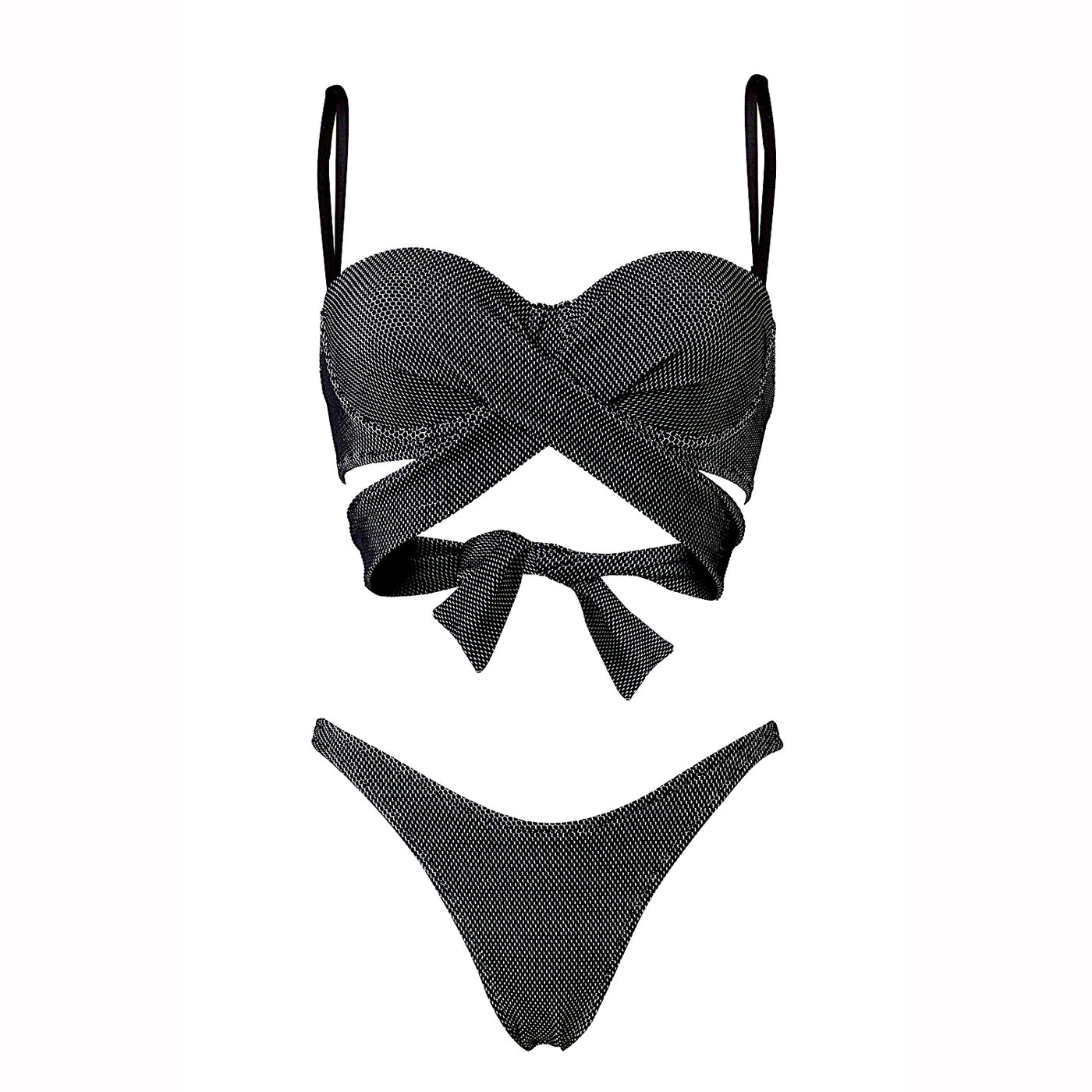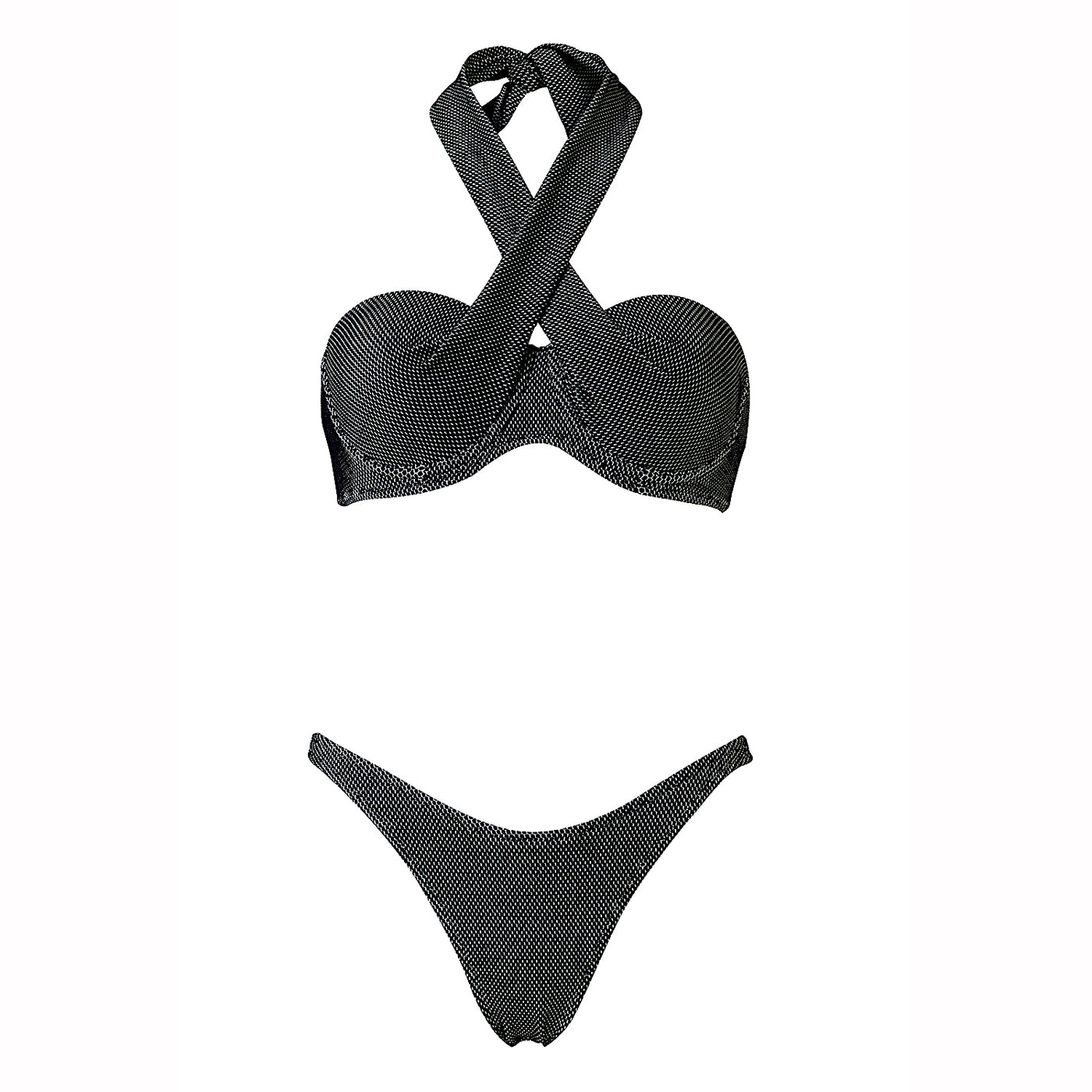Wear it 2 different ways ! A bikini that wraps at the back or crosses over halter style with neck tie. Under-wire support. Textured super comfortable pique textured fabric. High-cut bottoms. Easily adjustable for your desired support.