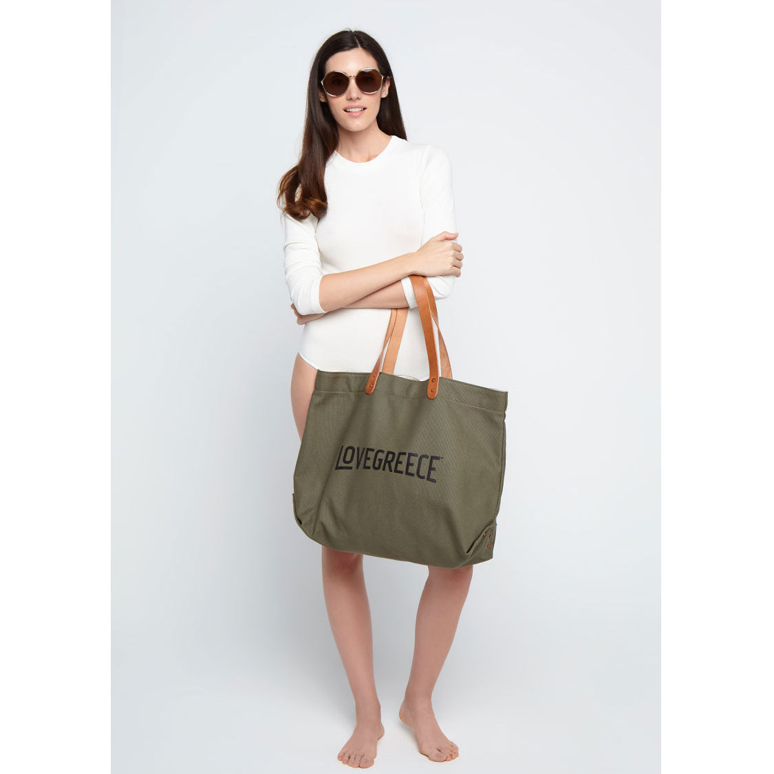 This roomy, tough all day canvas bag is sturdy and made to last! This oversized bag is great for shopping, taking to uni, the beach... or throwing your gym gear in it. The thick vachetta leather double handles will soften to a lovely patina over time. Made with love, in a family-owned workshop in Athens.