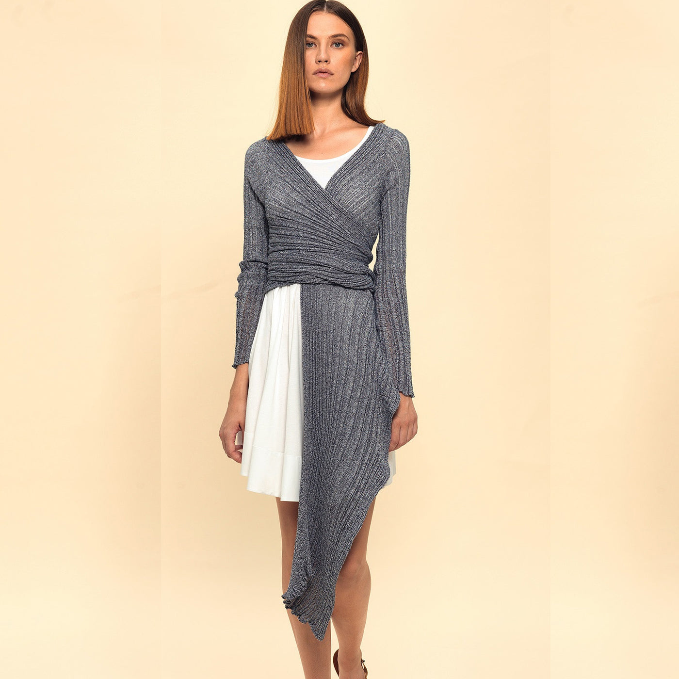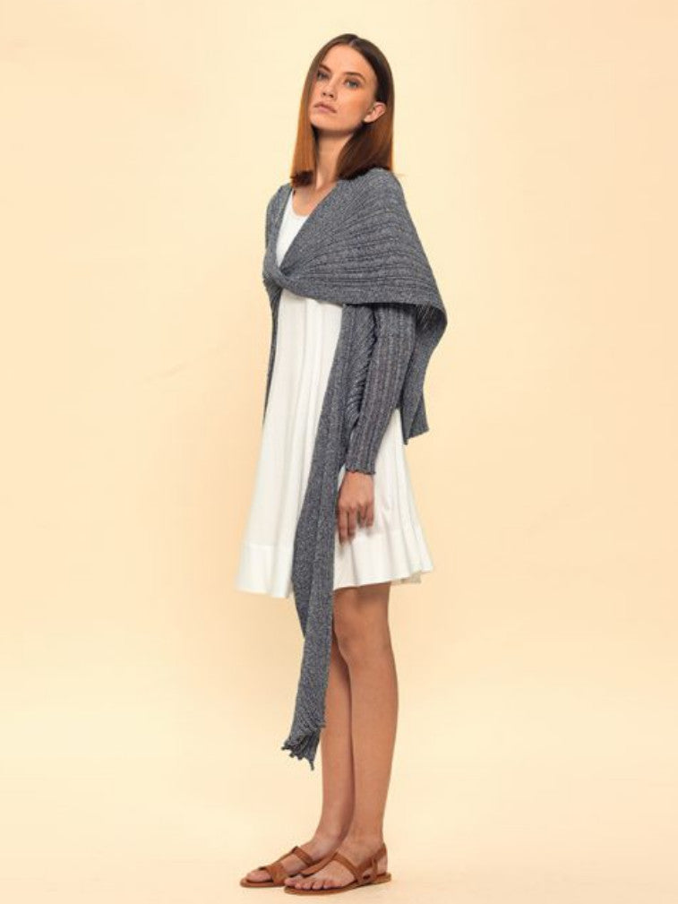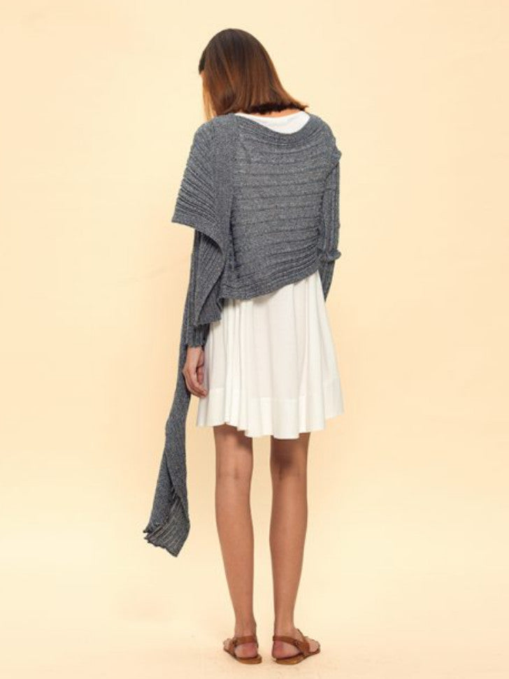 This versatile and clever knit wrap cardigan is perfect for day and night, and your next go-to trans-seasonal companion. The lightweight, soft touch knit is constructed to be draped in various ways and according to how you feel. Wear it as a cross body top, as a cardigan, a lengthened wrap...or in 20 polymorphic other ways, | Watch the video.