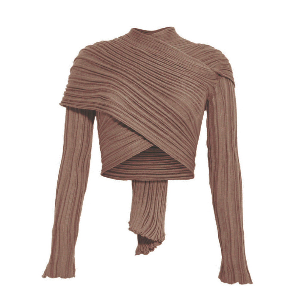 This versatile and clever knit wrap cardigan is perfect for day and night, and your next go-to trans-seasonal companion. The lightweight, soft touch knit is constructed to be draped in various ways and according to how you feel. Wear it as a cross body top, as a cardigan, a lengthened wrap...or in 20 polymorphic other ways, | Watch the video.