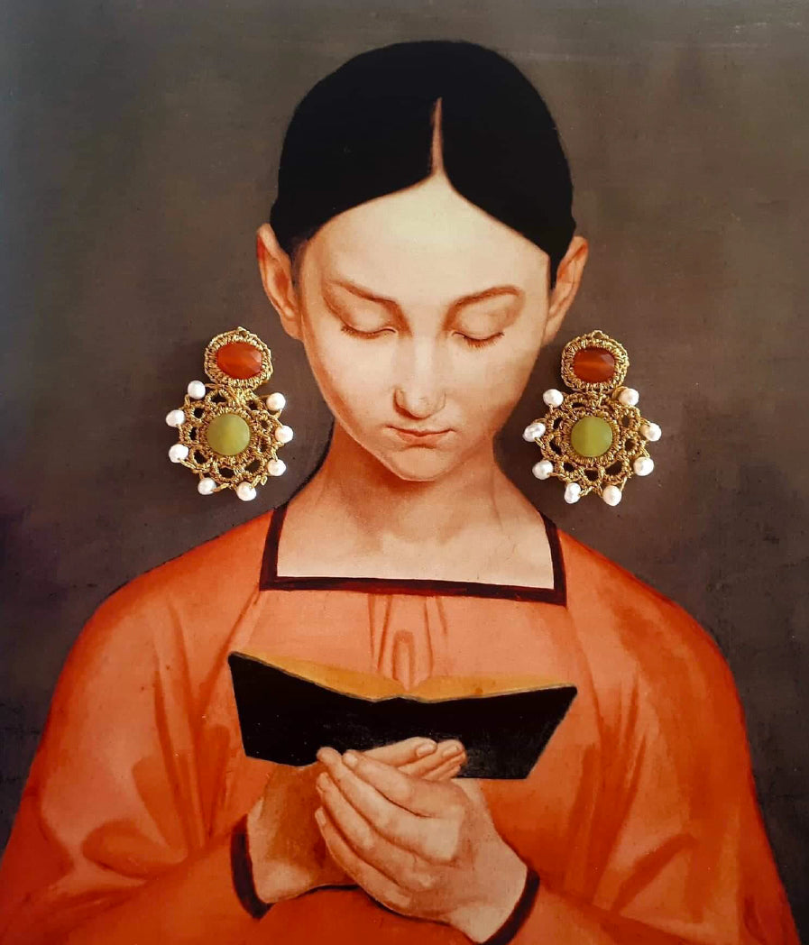 Sofia Papakosta creates unique handcrafted jewellery inspired by ancient Greek and Byzantine jewellery. Sofia combines lovingly sourced semi-precious stones, gems, vintage embroideries, and finishing with traditional fine crochet.