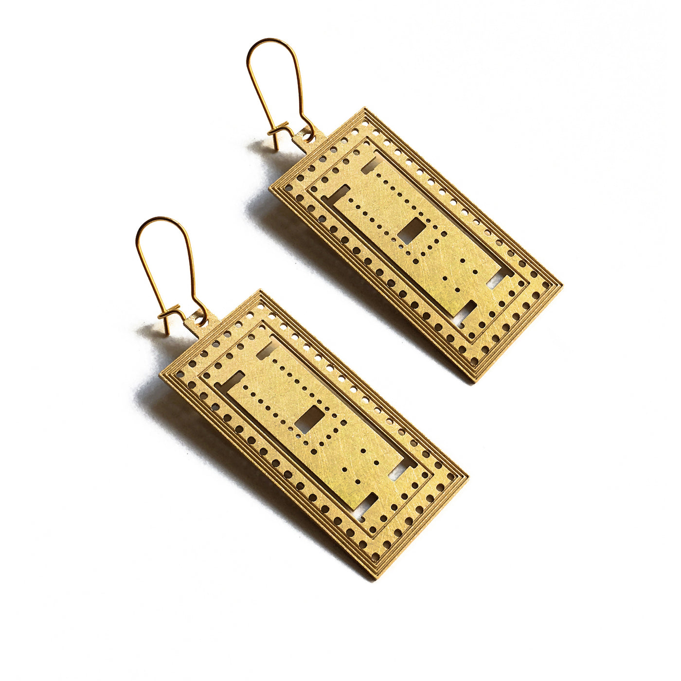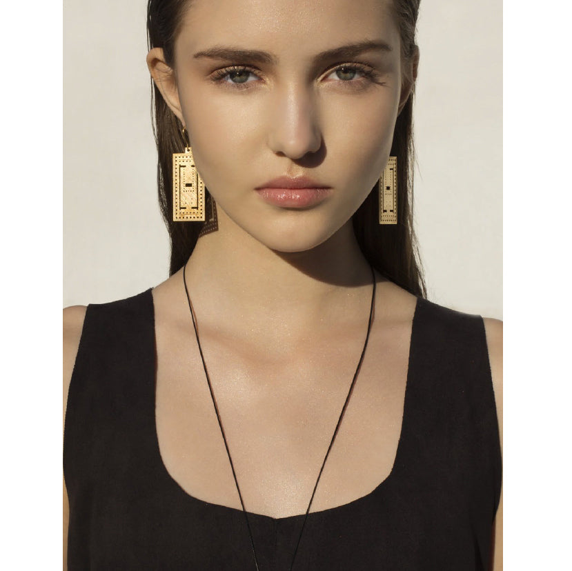 Finely hand-crafted panel earrings featuring the architectural blueprint design of the Parthenon in Athens.