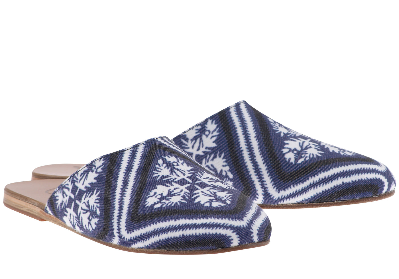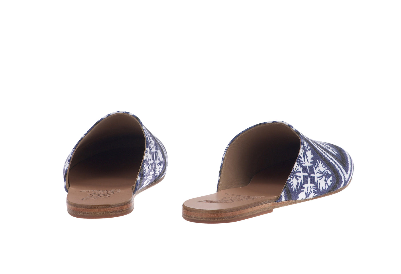 Make a stylish statement with these premium handcrafted leather lined mule shoes. The featured print is a collaboration between Ancient Greek Sandals and Greek scarf maker Kridemnon. Perfect with your white tee and cropped denims.
