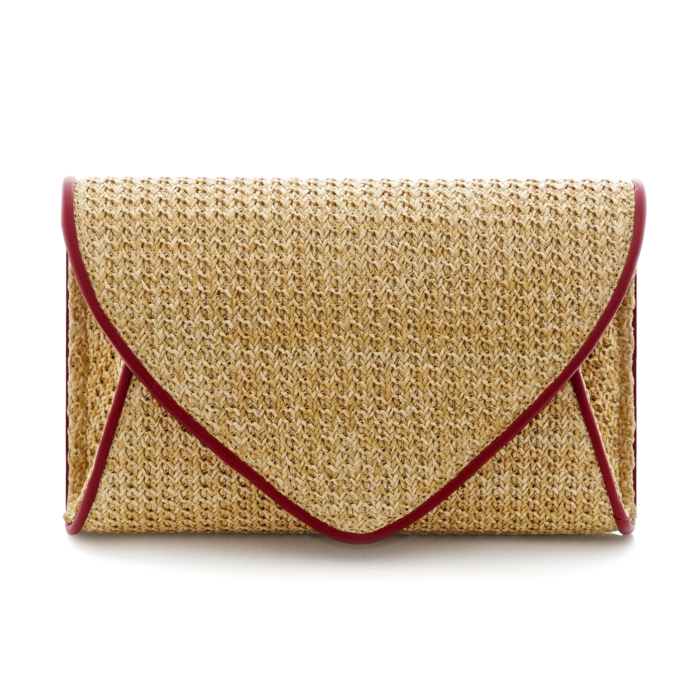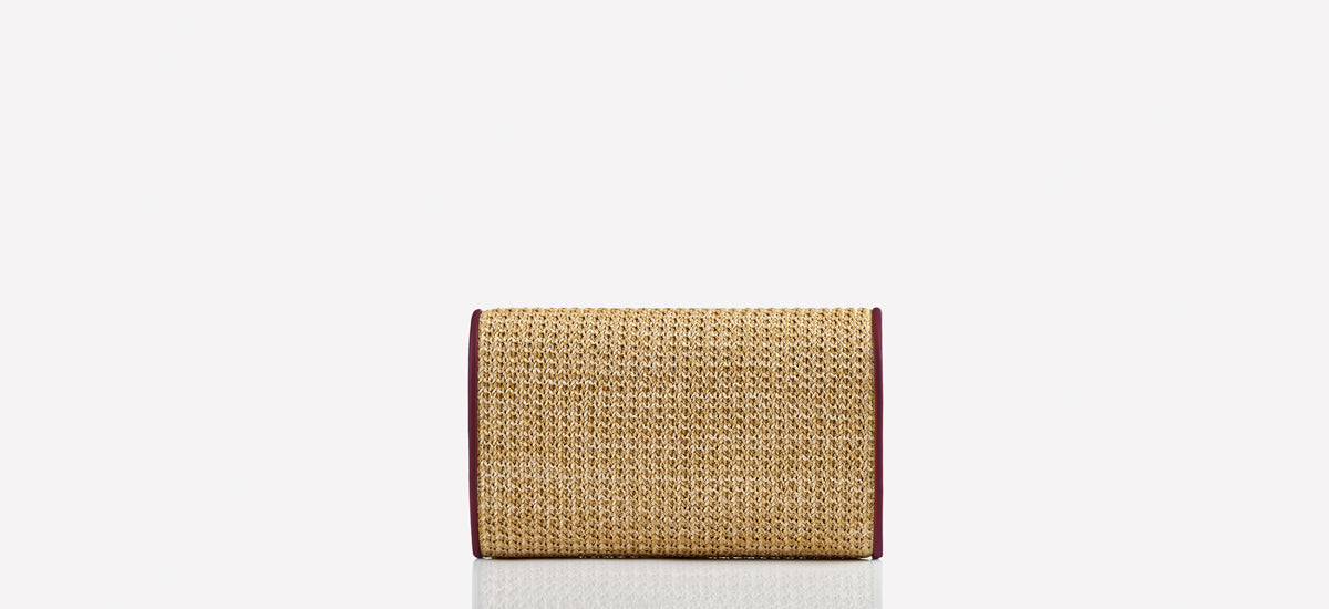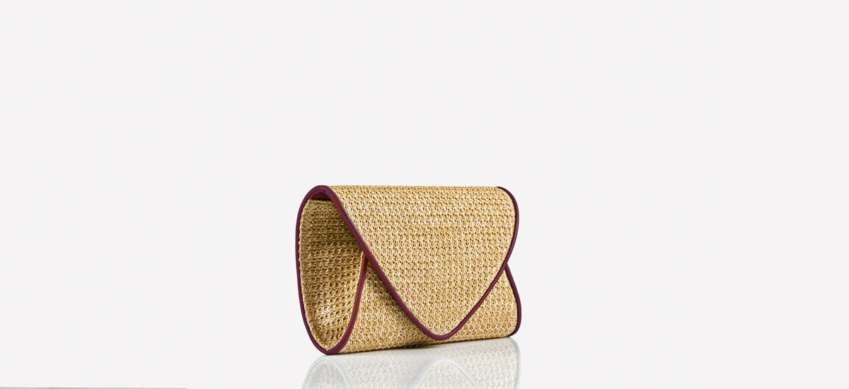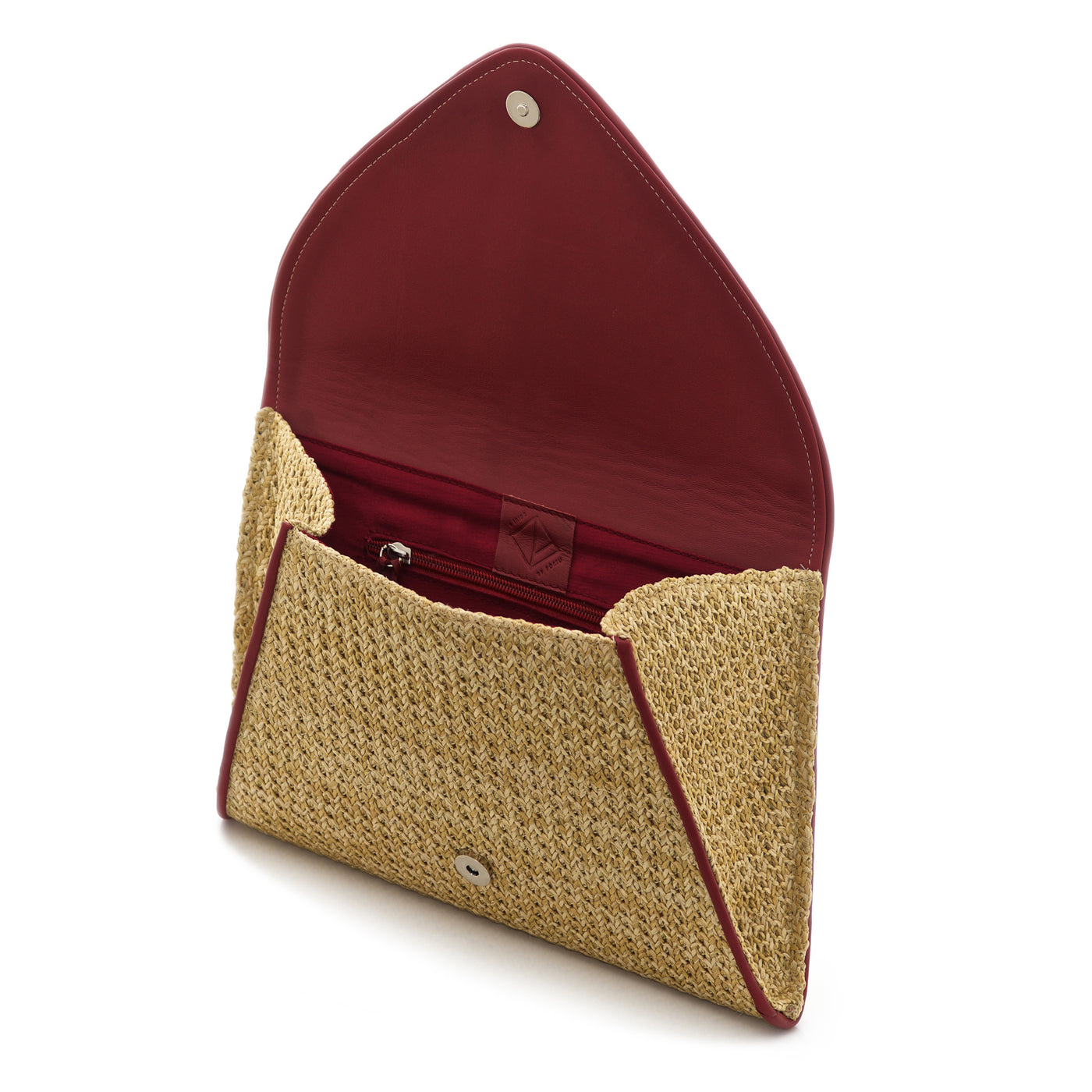 This premium envelope clutch bag is meticulously handcrafted from plaited polished raffia. Featuring the finest lambskin leather lining and leather piping. The Iride de Portu, clutch is spacious with a lined interior. Made entirely by hand, no two bags are identical. Limited pieces.