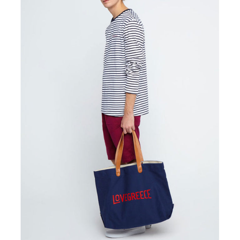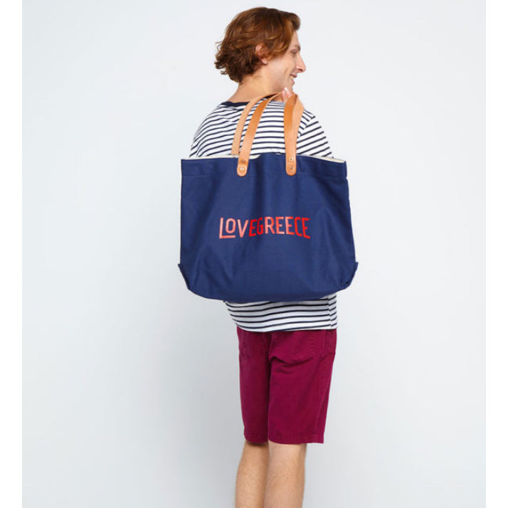 This roomy, tough all day canvas bag is sturdy and made to last! This oversized bag is great for shopping, taking to uni, the beach... or throwing your gym gear in it. The thick vachetta leather double handles will soften to a lovely patina over time. Made with love, in a family-owned workshop in Athens.