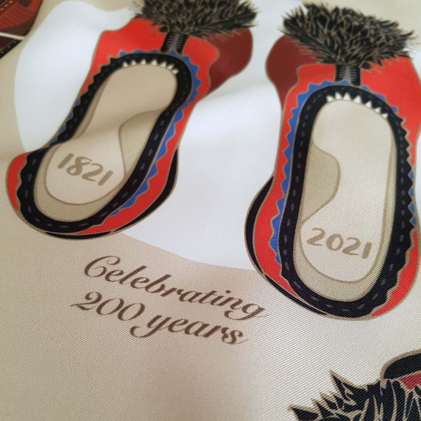 'Tsarouhia' are the traditional shoes worn by the Greek soldiers known as Evzones. Tsarouhia are sewn by hand, and have a characteristic pointy nose, covered by a large woollen pompom.