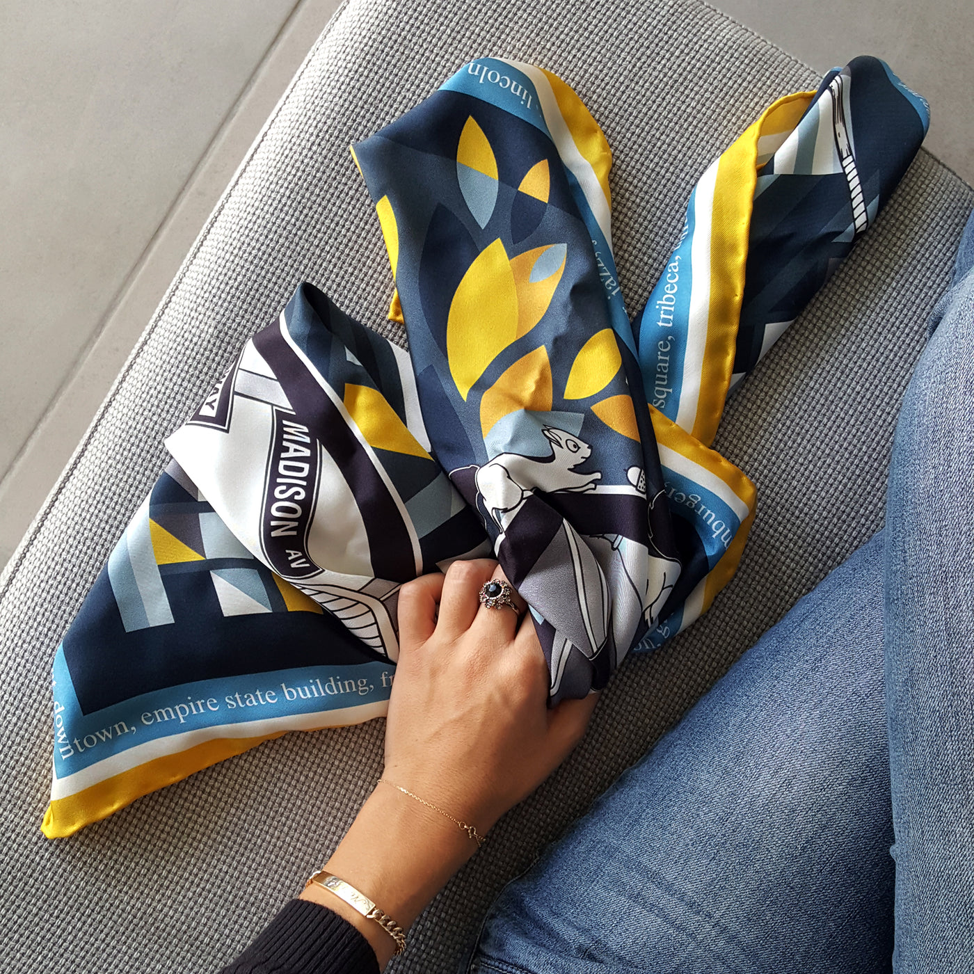 A luxurious scarf made with silk twill and finished with hand-rolled hemming. The ideal accessory to complement your style. Wear it in many different ways | around your neck, as a belt, as a top, as a headscarf, or frame it on your wall!,