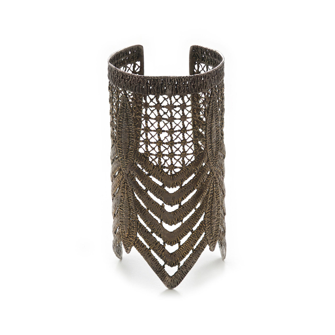 Handmade silver-plated cuff with art-deco inspired lace effect. Made using the centuries-old 'lost wax' jewellery crafting method, dating back to the 3rd millennium BC.