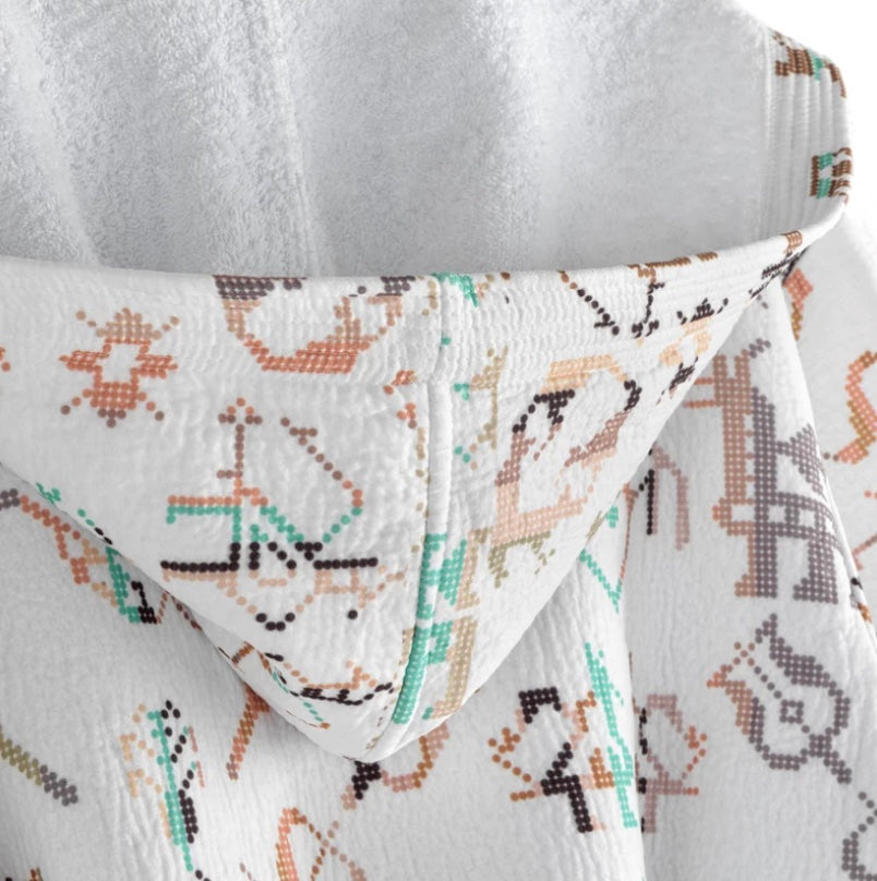 Postfolk create luxurious premium digitally printed towels and bathrobes, featuring contemporary post modern interpretations of century old traditional folk decorative symbols.