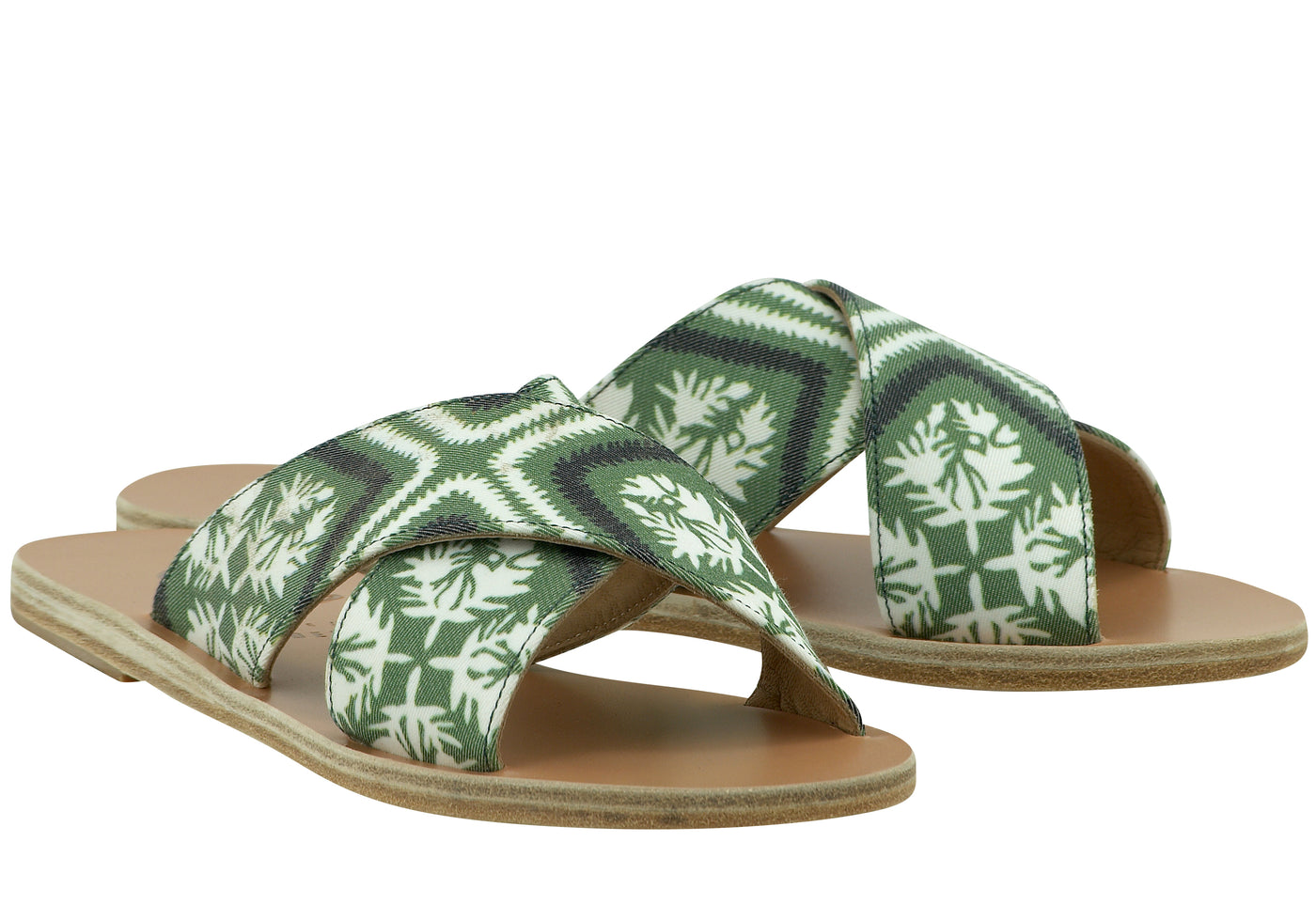 Make a stylish statement with printed premium hand-crafted slip-on slides. The print is a collaboration with Greek scarf maker Kridemnon. Perfect with your white tee and cropped denims by day, to your summer dress at your evening soiree.