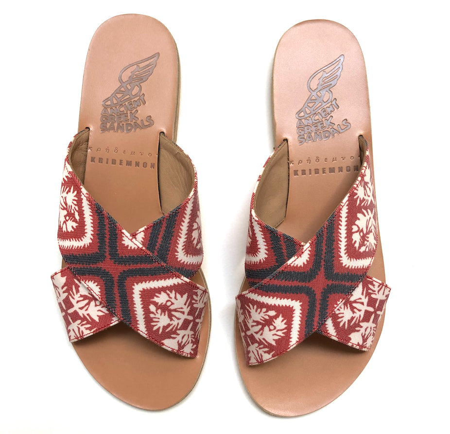 Make a stylish statement with printed premium hand-crafted slip-on slides. The print is a collaboration with Greek scarf maker Kridemnon. Perfect with your white tee and cropped denims by day, to your summer dress at your evening soiree.