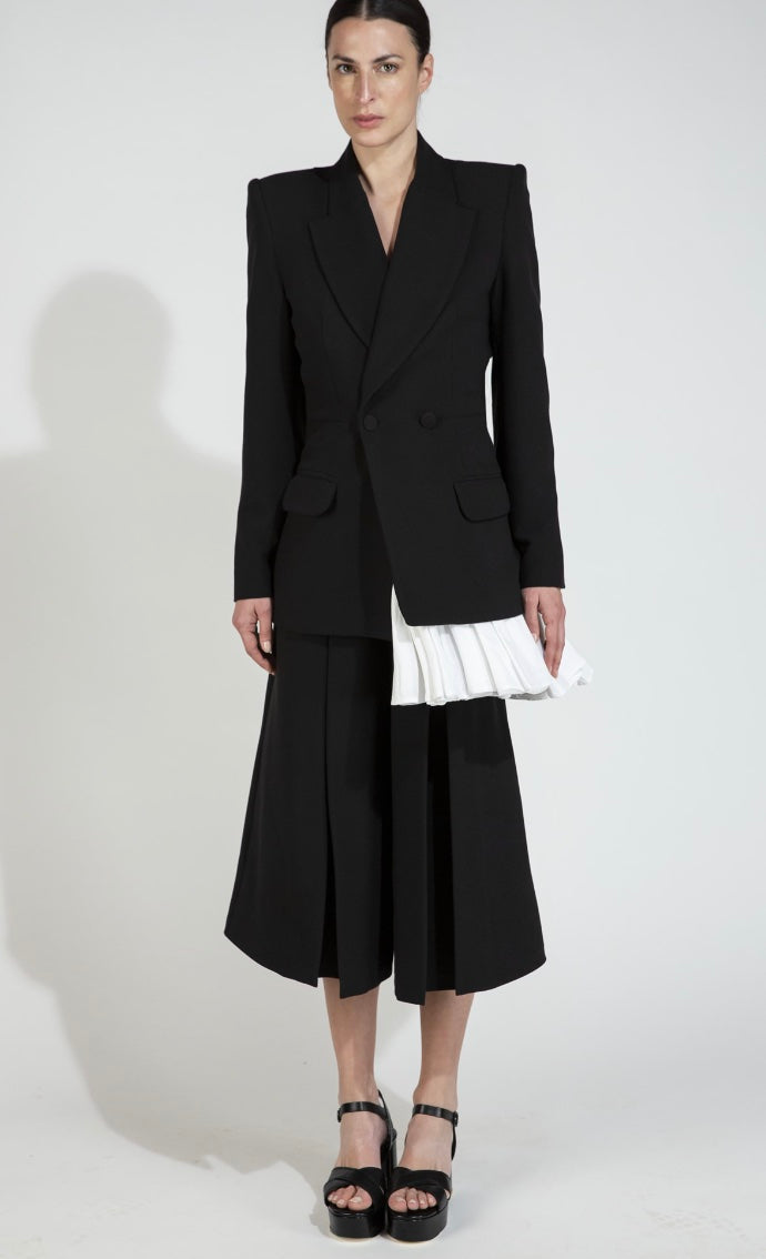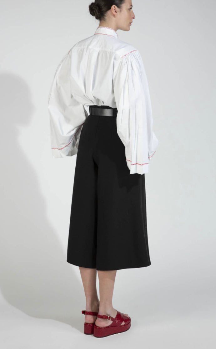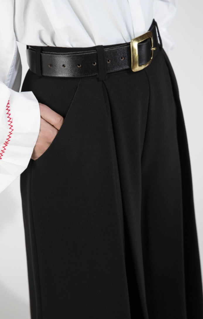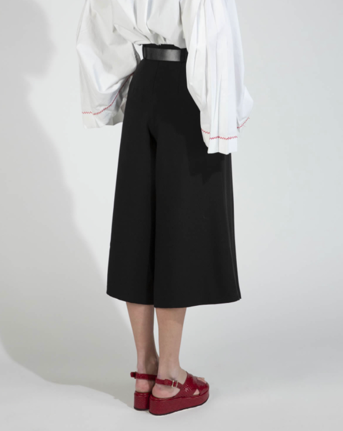 Luxurious tailored sophisticated culottes with a fluid drape. The wide-leg shape is flattering, creating an illusion of a skirt.