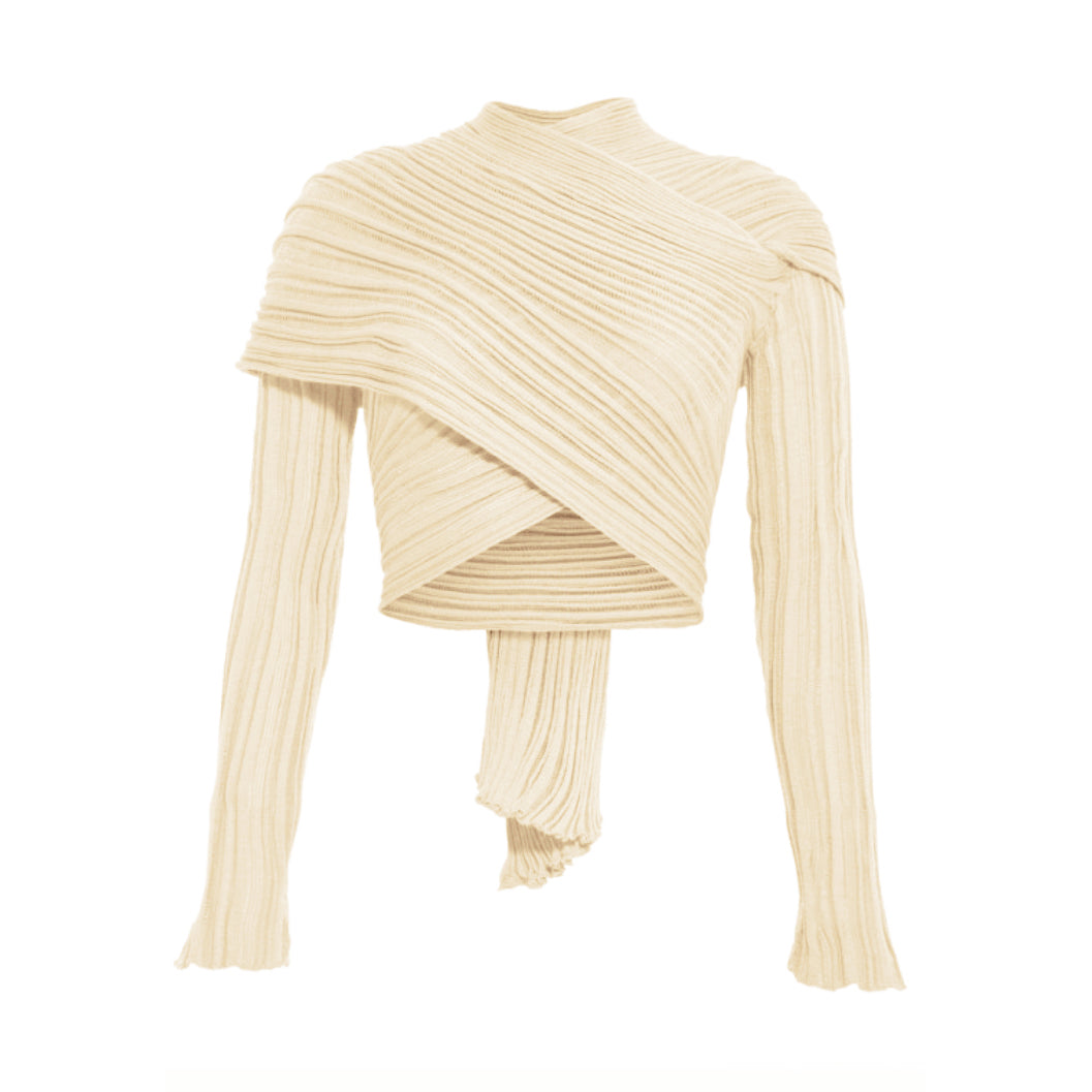 This versatile and clever lightweight knitted wrap cardigan is perfect for day and night. Your perfect trans-seasonal travelling companion and a must have for easy layering. The soft touch and horizontal ribbed knit construction easily drapes according to how you feel. Wear it as a crossbody top or as a cardigan...and in 20 polymorphic different ways! Watch the video.