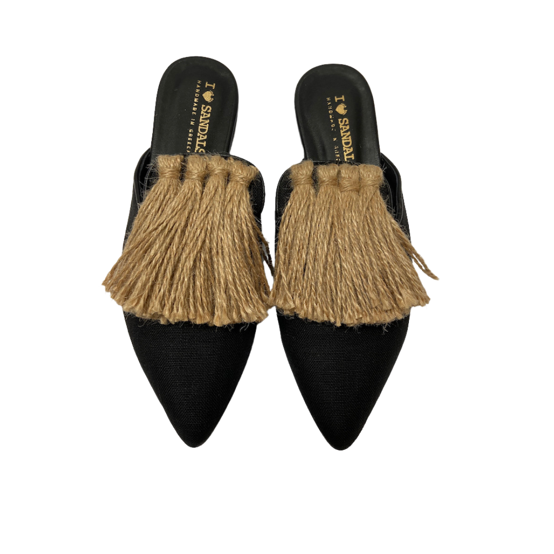 Slide on handcrafted leather lined mules. Featuring a tassle detail. Great with jeans, or paired with a dress.