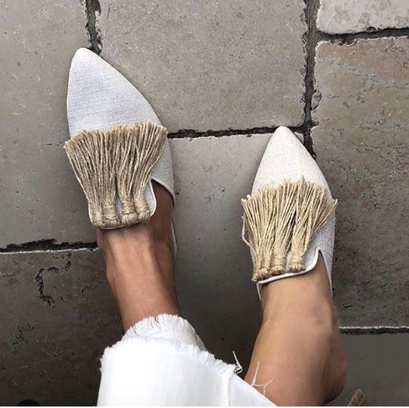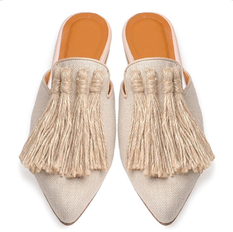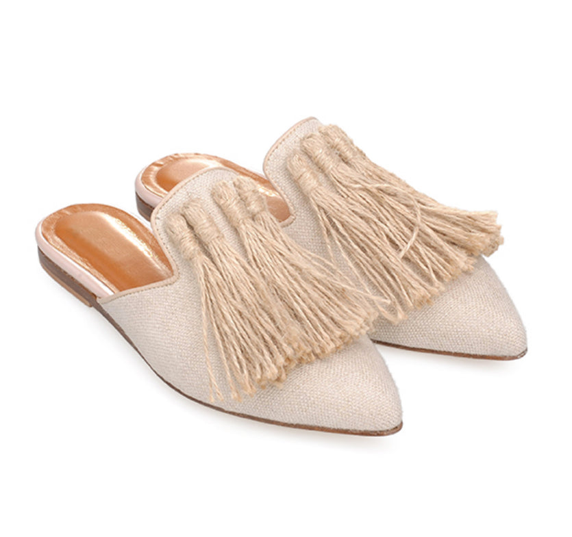Slide on handcrafted leather lined mules. Featuring a tassle detail. Great with jeans, or paired with a dress.