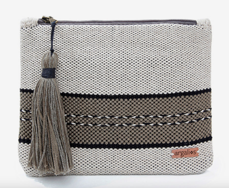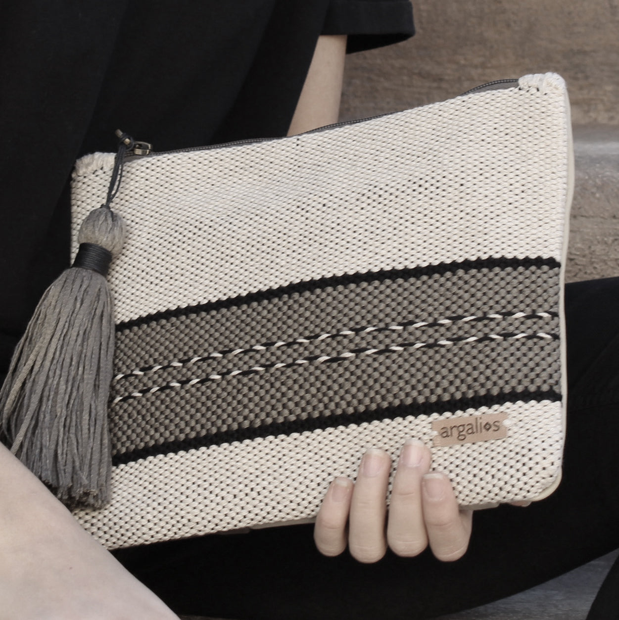 Argalios create hand woven clutches, using a 19th century wooden Loom. Each clutch takes up to 3 days to handcraft, from start to finish.